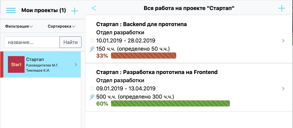 Как было описано выше, все работы, заведенные проектным руководителем, автоматически попадают под поле зрения